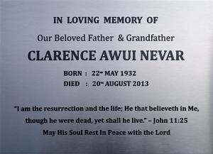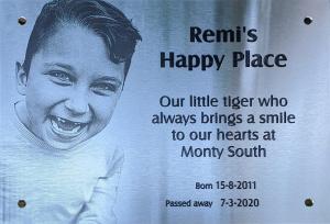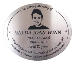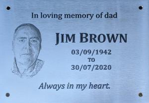 Thanks to state of the art laser processing, we are able to enhance your 316 Stainless Steel plaque with near-photographic quality images. This is a fairly unique offering in which we are combining traditional deep machine engraving with laser-ceramic marking provided by a high end Universal Laser System. A dark grey mono image is created which blends well with the epoxy filled engraving and slick 316 stainless steel background. The final result is an attractive and personal tribute to honour your important memories, that will pass the test of time in even the most extreme environments.